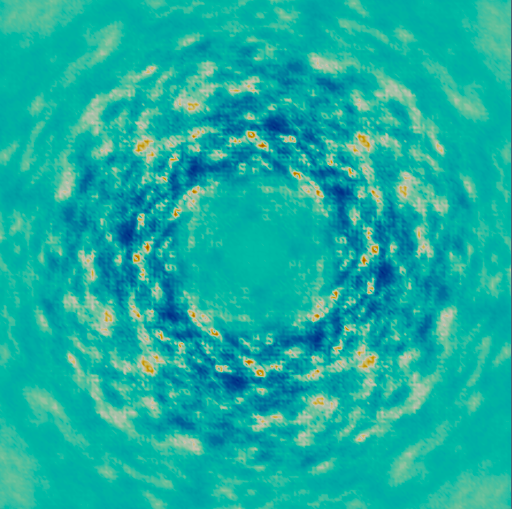Now we know more. Visual comparisons (above images) show that the rich anisotropic diffuse diffuse features in the maps with CHES buffer (left) vs. ADPr (center) in the binding pocket have similar patterns of peaks and troughs that differ in detail. Subtracting them reveals the differences more clearly (right). Quantitative analysis shows that the variations in the difference map are comparable in strength to the intensities in either individual map. This result is encouraging as it indicates that such differences might be observed in experiments.